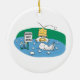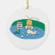 funny duck with hard hat avoiding golf balls ceramic ornament