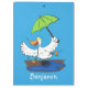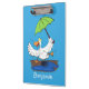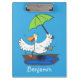 Funny duck with umbrella dancing cartoon clipboard