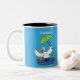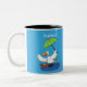 Funny duck with umbrella dancing cartoon Two-Tone coffee mug