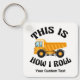 This funny gift for a dump truck driver features a yellow dump truck inside the hilarious phrase This is How I Roll. A cool pop culture reference for a driver who likes modern humour. Cute personalized keychain for drivers with their custom text.