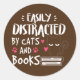 Funny Easily Distracted by Cats and Books Cat Classic Round Sticker