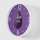 Funny eggplant clock with a purple cartoon eggplant illustration. This funny eggplant design would be perfect as a gift for cooks and people who love eggplants, cooking and the color purple.