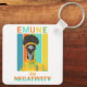 The keychain showcases a whimsical illustration of an emu bird, capturing its unique features and playful personality. The design is accompanied by the pun "Emune to Negativity," creatively playing on the word "immune" to highlight the emu's resilience and the importance of maintaining a positive mindset.