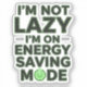 Embrace your inner homebody with this hilarious vinyl sticker! Featuring the relatable and sarcastic quote: "I'M NOT LAZY = I'M ON = ENERGY SAVING MODE", this sticker is a perfect way to label your laptop, water bottle, or journal. It makes a fantastic, inexpensive funny gift for students, programmers, co-workers, and anyone who appreciates office humor and a good nap. Durable and custom-cut for easy application!