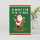 Creative equestrian Christmas card featuring Santa riding a rocking horse and funny holiday line.