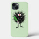 Funny gothic iPhone case with a cartoon illustration of an evil character nurse who is holding a syringe with a green liquid over light green customizable background, great for Halloween. This weird creature has prepared an injection with an unknown medicine - it may be a miraculous drug but it may be a poison, too. Who’s willing to be cured?