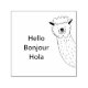 This stamp with a lovely childish style cartoon drawing of farm animal alpaca with English hello, French bonjour, Spanish hola trilingual greetings is a nice choice for your craft projects.
