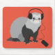 Ferret mousepad for a music lover who also loves ferrets. This funny ferret mousepad features a vector illustration of a cute fluffy ferret wearing big headphones and listening to its favorite songs on its own phone. This fun design will also make a great gift for a musician who has a pet ferret.