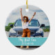 Celebrate the excitement of buying a first car with this funny, festive 2-sided Christmas ornament. The front features playful red holiday lettering that reads “20XX You Sucked! But Yay, Bought a Car!” with cute snowflakes and a car key graphic. The back is customizable with one of your favorite photos and your name underneath the phrase “My First Car.” Perfect as a milestone keepsake for any new driver.