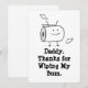 Celebrate a special milestone with this Funny First Father's Day Card—a cheeky and heartfelt way to honour the amazing dads out there, especially new fathers. This playful card features the humourous message: “Daddy, Thanks for Wiping My Bum”, making it a perfect gift from a baby son or daughter. Whether it's Daddy’s first Father's Day, his birthday, or just a sweet surprise to brighten his day, this card is sure to make him laugh and feel appreciated.