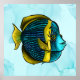 Funny fish poster with a digital artwork depicting a cute tropical angelfish with long eyelashes in lovely blue and yellow colours. Great addition to a Under The Sea themed nursery room decor.