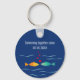 This romantic keychain includes a heart-shaped photo template where you can easily add your favorite couple's photo. It also features the playful text "I think you're fin-tastic!" and "Swimming together since [date]," all of which is editable.