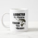 Funny bass fishing coffee mug for the avid angler. Addicted to Fishing, Forced to Work! This mug features a largemouth bass jumping out of the water chasing a fishing lure.
