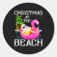 Funny Flamingo Float Santa Claus Christmas At The Classic Round Sticker