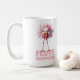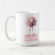 Funny pink flamingo ceramic coffee mug design say "Fluff Happens". Bold print text and a fluffy frazzled flamingo with feathers askew make this an hilarious coffee cup for your favourite flamingo lover. Perfect to add to a funny coffee mug collection. Your family, friends and coworkers will love this funny little pink feathered floof.