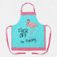 Funny pink flamingo apron says Flock off! I'm baking! Retro pink and blue colour palette. Perfect flamingo theme kitchen gear for the person in your household or circle of friends who's known for their baked goods or fabulous casseroles. Great novelty gift for anyone who loves to bake up tons of treats!