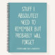 Simple lined teal blue notebook for notes, to do lists, and more with a funny cover quote - Stuff I Absolutely Need to Remember But Probably Will Forget. Personalize it with a name.