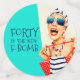 An outrageously funny and unique birthday party confetti for a fabulous woman celebrating her 40th Birthday, this design features a kitschy stylish woman in striped sunglasses and hair turban with a polka dot bag and striped towel, rocking her attitude. The humour is carried out in the bold text title "FORTY IS THE NEW F-BOMB". Personalize the name with the fabulous Birthday Girl. The retro colour scheme of aqua, beige, navy and red adds to the fun of this design.