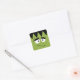A funny Halloween Frankenstein face sticker by fj greetings. There are stitches on the left eye and the mouth is also stitched. The eyes are funny and cross eyed.