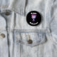 A button with a cute illustration. Frankenstein monster with pink and purple hair and a dapper coat and tie.