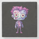 Stone coaster with a cute illustration. Frankenstein monster with pink and purple hair and a dapper coat and tie.