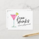 Funny budget friendy save the date postcards for the fun couple who can't wait to celebrate with family and friends at their wedding. Free drinks (and we're getting married!) colourful cocktail design is personalized with your wedding details.