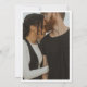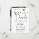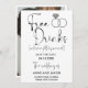 Black and white typography funny "Free drinks (and we're getting married) save the dates. Add your details to the front and a photo to the back.