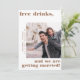 Funny "free drinks and we are getting married" Save the Date Card. Add your custom wording to this design by using the "Edit this design template" boxes on the right-hand side of the item, or click the blue "Customize it" button to arrange the text, change the fonts and colours, and to also add additional information or images to this design. Click "Customize Further" to open up full editing options. Contact us for more options and matching items.