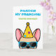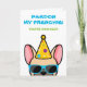 If you know someone who loves french bulldogs and has a good sense of humor, this funny frenchie birthday card is ideal for sending to them on their special day. The design features a cartoon-style illustration of a light fawn colored french bulldog wearing a party hat and sunglasses with the wording "Pardon my frenchie! You're how old?" written on the front. This design is also available with different colored french bulldogs.