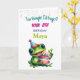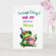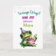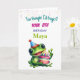 The front of the card features a clever and punny greeting: "You thought I'd froget?", making it a memorable choice for friends and family who love a good laugh. Set against a clean, white background accented with colorful birthday confetti, the vibrant colors—from the frog's lime green skin to the bright magenta cake frosting—really pop!