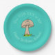 Funny Fun Guy Personalized Man's Birthday Party Paper Plates feature a cartoon mushroom with a goofy grin whose ready to celebrate, plus the guest of honour's name and mention of the occasion for the big celebration. Use for any occasion, not just birthdays, and for any age, from children to adults. Presented here is the turquoise version with light turquoise lettering because these bright colours are associated with excitement and good times and, together with the humourous illustration, signal that something special or out of the ordinary will be taking place But you can select any background and text colours you desire, as well as compose your own message to suit the occasion.