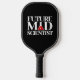 Crack up the competition in pickleball with this funny pickleball paddle, which features the dubious job title of "Future Mad Scientist" with an Erlenmeyer flask / beaker of unknown liquid standing in for the 'A' in mad. A great gag gift idea for those contemplating a career in the STEM fields! Reverse shows identical design.