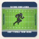 Don't let your guests fumble their drinks! This witty Football Field Game Day Coaster Set is a must-have accessory for any serious sports fan's tailgating party or game-watching event. This coaster features a sharp, bold design centred on a classic green football field graphic with yard lines. The colour scheme utilizes a deep navy blue border and accents with grey detailing, fitting many popular team colours. The hilarious and memorable slogans "SECURE YOUR LIQUID" and "DON'T FUMBLE YOUR DRINK" frame the design. A dynamic running player silhouette holding a football is centred on the field, bringing the game action to your table. This set of six coasters makes a great home bar or living room addition. The text is fully editable, allowing you to easily swap the top and bottom slogans for a team motto, a family name, or your own funny one-liner! Protect your surfaces in style and show your team spirit. Click "Personalize" to make this unique drink accessory perfect for your next big game!