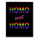 Sweet and funny greeting card, with decorative text "HOMO sweet HOMO", one word per line. First and last shows bold capital letters filled with the gay symbol, the rainbow flag. The centred "sweet" is slightly angled and can be colour adjusted.