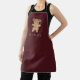 This funny holiday apron shows a cute illustration of a gingerbread woman in red and green with festive typography reading BET BAKED.