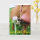 Dog sniffing a bee photo customizable greetings card. Front text reads "Get Well Soon". Text can be customized.