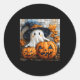 Funny Ghost Pumpkin Cute Halloween Patchwork Art Classic Round Sticker