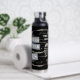 Give this funny water bottle to your boss as a gift, and you aren't really complimenting them... Printed in a stenciled font, 'My Employees are better than yours.' This is a great quality water bottle that you can personalize with the name and/or nickname of your boss. Perfect for a construction boss or anyone in charge of a team of tradespeople. The water bottle is black with a cool 'streetwear' style design in white, and grey. The design has 'scrapes' on it and some imprints of work boot treads. The water bottle looks weathered, but I swear it's new!