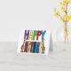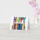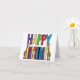 Cute fun unique whimsical giraffes standing by colourful happy birthday block letters greeting card design is popular with giraffe lovers and animal lovers in celebrating birthdays.