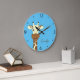 On this wall clock you see a funny giraffe head. This character looks really cheerful and funny with his cute smile and big black staring eyes.