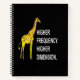 Funny Giraffe Pun Notebook designed by Nisha Prabhu. Cute funny giraffe with pun words ''Higher Frequency. Higher Dimension.'' Jot down your thoughts and ideas with a touch of whimsy using this Funny Giraffe Pun Notebook! This playful notebook is perfect for adding a bit of humour to your daily note-taking routine. Featuring a charming giraffe pun design on the cover, it's sure to brighten your day every time you use it. With high-quality paper and a sturdy cover, this notebook is both practical and delightful. Whether you're in a meeting, class, or just doodling for fun, this notebook is the perfect companion. So why settle for boring when you can add a splash of humour to your writing with this must-have notebook from Cutehomegifts Zazzle!