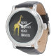 Funny Giraffe Pun Watch designed by Nisha Prabhu. Cute funny giraffe with pun words ''Higher Frequency. Higher Dimension.'' Tick-tock your way to a good time with this pun-tastic giraffe watch! Stay on schedule with a smile as you sport this playful timepiece that's as charming as it is functional. Perfect for adding a touch of humour to your wrist or as a unique gift for the animal lover in your life. Stand out from the crowd with this witty design that's bound to make you the talk of the town. Don't miss out on this hilarious watch - get yours on Cutehomegifts Zazzle today!