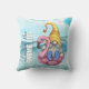 This funny outdoor pillow features a gnome sitting on a pink flamingo float in the water at the beach. The quote which may be personalized reads "Lovin' the Gnome Life". Designed by Susan Coffey.