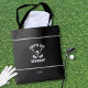 A bold black tote featuring the funny golf saying “Let’s Go Clubbin’,” arranged with crossed clubs, a golf ball, and clean white accent stripes for a modern sports look. The bottom section includes a simple template for adding a monogram, name, or short text, and the design repeats on the back for a polished finish.