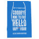 Celebrate the retirement of a soon-to-be former coworker with this funny gift bag, which features the sentiment, "Goodbye Nine to Five Hello to Happy Hour" in a white, grunge style font, with an apple martini cleverly standing in for the "Y" in "Happy" on alternating baby blue and white backgrounds. Reverse shows identical design.