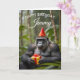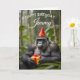 Relaxing in the jungle, this easygoing gorilla is all set to share some wild fun with a special gift in hand.