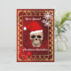 PERSONALIZE this chic elegant sophisticated red & gold , with a modern funny gothic alternative Santa Claus skull , , bow snowflakes, and gold border with your own text.