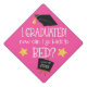Humourous typography I Graduated Now Can I Go back to Bed? Fun for graduation day with mortar board hat, blackboard and star motifs on a hot pink background. Easily personalise the year.