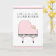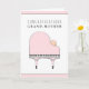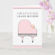 Piano themed new grandma congrats card featuring a baby grand piano and new baby girl.