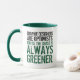 Add a touch of whimsy to your favourite drink and toasts with this mug, which features the humourous observation "Graphic Designers are Optimists. For Us, The Grass *is* Always Greener." As a graphic designer, I have been asked the question "is it really that [insert your colour of choice]" many times. The real in-joke/off-colour remark (pun intended)/inference here being "did you oversaturate your primary colours?" The perfect "novelty" mug for image manipulation wizards!